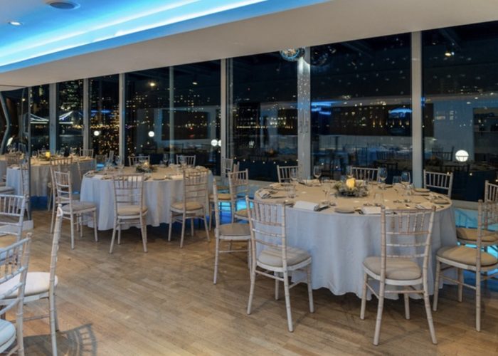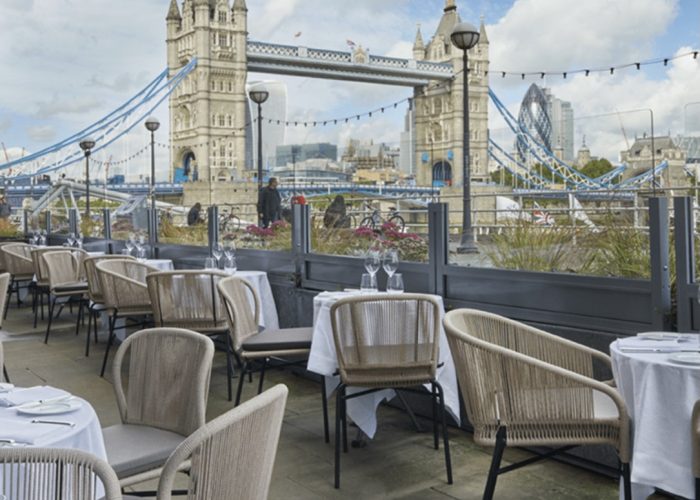 During the warmer months, the venue’s glass doors open to create a sense of alfresco dining, while during the winter the floor-to-ceiling windows offer unrivalled views over the Thames.