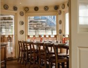 The ground floor dining room at Casa do Frango London Bridge lends itself to larger private dinners and receptions, with a private bar perfect for welcome drinks. The space exudes a rustic charm with long wooden tables, slow ceiling fans, hand-painted motifs and plenty of greenery. The dining area benefits from having large windows, which ensures plenty of natural daylight floors the room, for privacy, velvet curtains can be opened or closed.